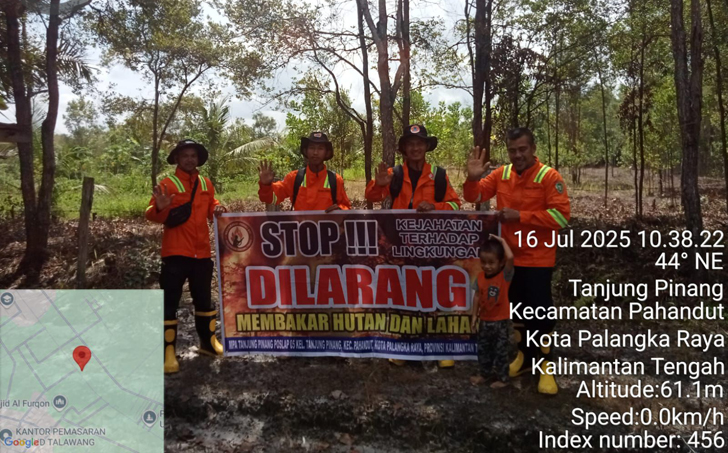 PALANGKA RAYA || gerbonginformasi.com – Guna mengantisipasi terjadinya kebakaran hutan dan lahan (karhutla), Polsek Pahandut melalui Bhabinkamtibmas Kelurahan Tanjung Pinang bersama Babinsa dan tim Masyarakat Peduli Api (MPA) melaksanakan patroli serta sosialisasi kepada warga, Rabu (16/7/2025).