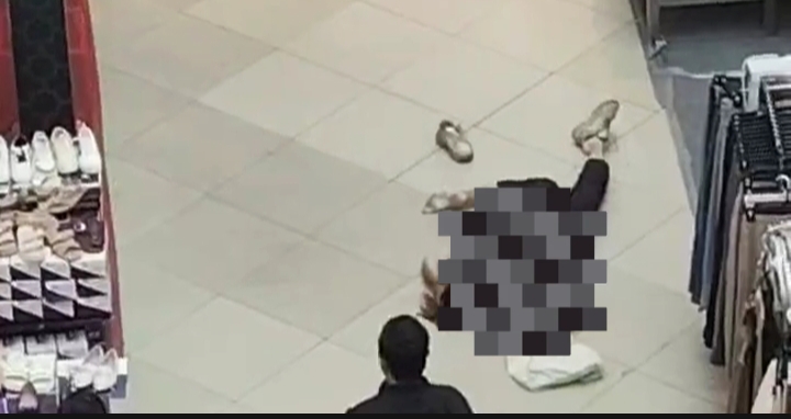 Tubuh korbanpun terjatuh di tengah suasana ramainya pengunjung plaza Medan fair tepat di tengah-tengah stand-stand penjulana pakaian.