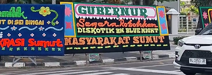 Gerbong Informasi. Com, Medan : Sepanjang Jalan Diponegoro, Medan tiba-tiba saja dibanjiri dengan banyaknya papan bunga yang ditunjukan kepada Gubernur Sumatera Utara, Bobby Nasution untuk menutup tempat hiburan malam Bule Night.