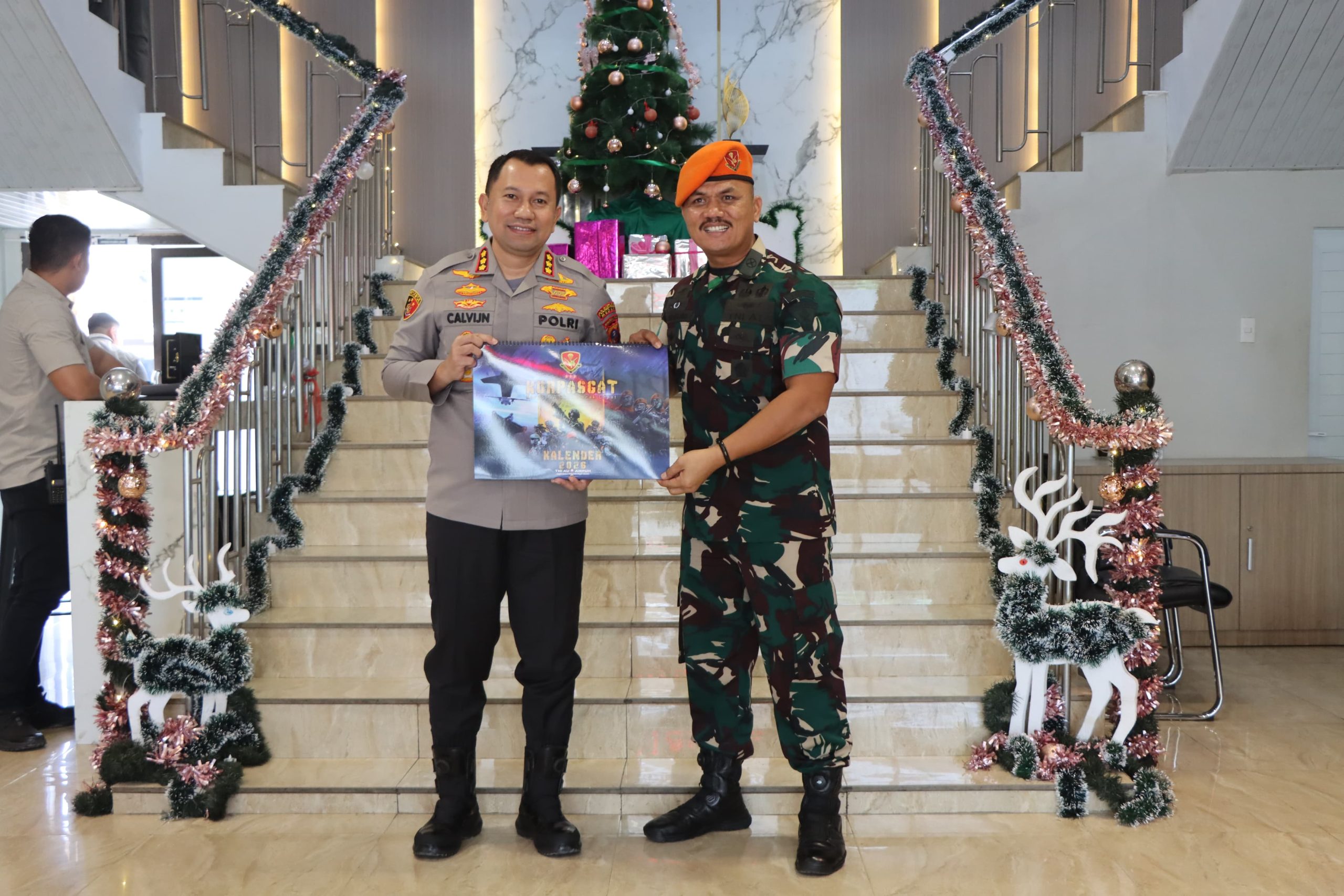 Gerbong Informasi, Medan : Kapolrestabes Medan, Kombes Pol Dr. Jean Calvijn Simanjuntak, S.I.K., M.H., menerima kunjungan silaturahmi Komandan Batalyon Komando (Danyonko) 469 Kopasgat, Letkol Pas Jhon Siregar, di Lobby Utama Polrestabes Medan, Rabu (14/1/2026).