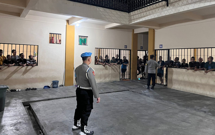 Kegiatan pun diawali dengan mengecek jumlah dan kondisi para tahanan yang ada di sana, termasuk juga pada kondisi ruangan baik itu kamar tahanan, teralis besi, gembok hingga kamera CCTV yang terpasang pada ruang tahanan Polresta Palangka Raya.