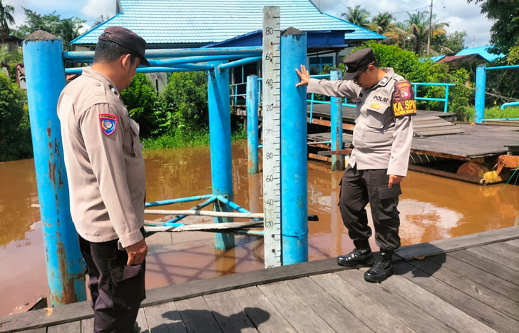 Personel Polsek Bukit Batu turun langsung ke lokasi, untuk memantau perkembangan debit air, sekaligus menyampaikan imbauan kepada masyarakat, agar tetap waspada dan siap mengambil langkah pencegahan apabila terjadi peningkatan ketinggian air.
