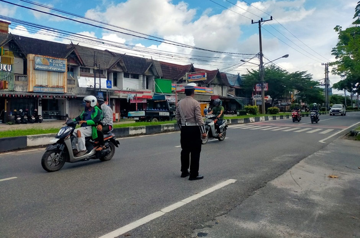 Di Jalan A. Yani simpang Jalan Ais Nasution, Kota Palangka Raya, guna memastikan kelancaran dan keselamatan pengguna jalan, khususnya pada saat jam kepulangan siswa/i SMP dan SMU.