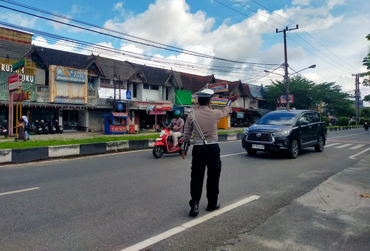 Di Jalan A. Yani simpang Jalan Ais Nasution, Kota Palangka Raya, guna memastikan kelancaran dan keselamatan pengguna jalan, khususnya pada saat jam kepulangan siswa/i SMP dan SMU.